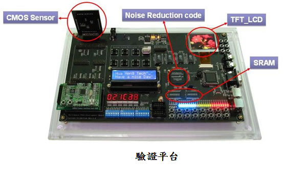 本計畫利用一種快速高效率的演算法去降低視訊影像的雜訊,以攝影鏡頭、FPGA與TFT_LCD建構出之視訊系統設計平台完成雜訊消除的IP設計雛型,利用此平台上攝影鏡頭取得之影像,透過FPGA之雜訊消除IP電路用來做雜訊消除與測試功能,並將測試結果顯示於平台上的TFT_LCD。