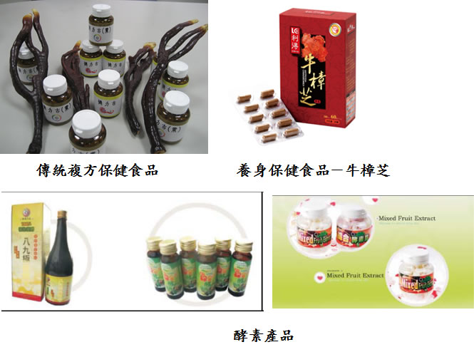 (1)「胃腸為後天之本」(中醫),人類的衰老常由胃腸功能衰退開始,生物科技系與產業界合作開發系列調整胃腸的酵素與益菌產品,為了方便使用有液狀和粉狀膠囊產品。