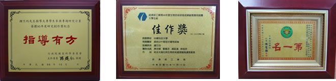 - 研究計畫結合專題製作,執行成果優異:本學院將研究計畫結合學生專題製作,亦即運用專題學生擔任研究助理,協助執行國科會及產學合作計畫,以訓練其實務能力,並獲得優良成果,例如本學院榮獲95年度大專學生參與專題研究計畫研究創作獎、榮獲96年中華科技金華獎學生專題製作-第二名及第三名、榮獲97年中華科技金華獎學生專題製作-第一名、第三名與佳作及2008和泰汽車節能環保季-省省大國民節能環保創作大賽團體組-校園創作組季軍。2010全國技專院校學生專題製作競賽:入圍二件,由鍾院長指導榮獲生醫農藥水產群類組第三名。