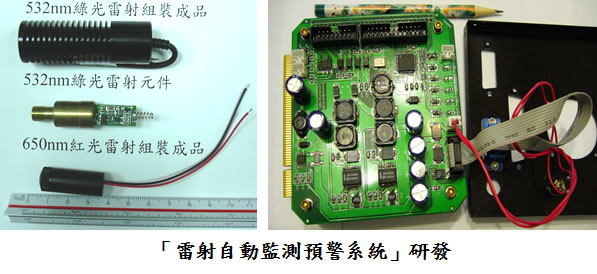 雷射光束具有收斂、強可干涉及同波前向之特性,以雷射光束做為系統之光源,可固定於限制變位處或與簡易監測設備上,若該處發生變位或監測設備量測結果超出預設值,光束自然無法投射至預定位置,可用以監測標的物是否滑動。雷射系統結合成本門檻低、自動化即時預警與應用範圍度高等優點,具有應用及市場價值。該系統擁有7項專利(6項中華民國專利及1項美國專利),量產後預估相關監測儀器及實務應用產業每年產值達2億元。