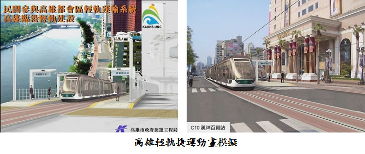 - 高雄輕軌捷運動畫模擬:本案為動畫顧問,執行之公共工程視覺模擬案,採以影像合成之動畫處理方式,呈現線性交通系統規劃後之成果模擬。以專業動畫技巧,呈現規劃案具體成效。